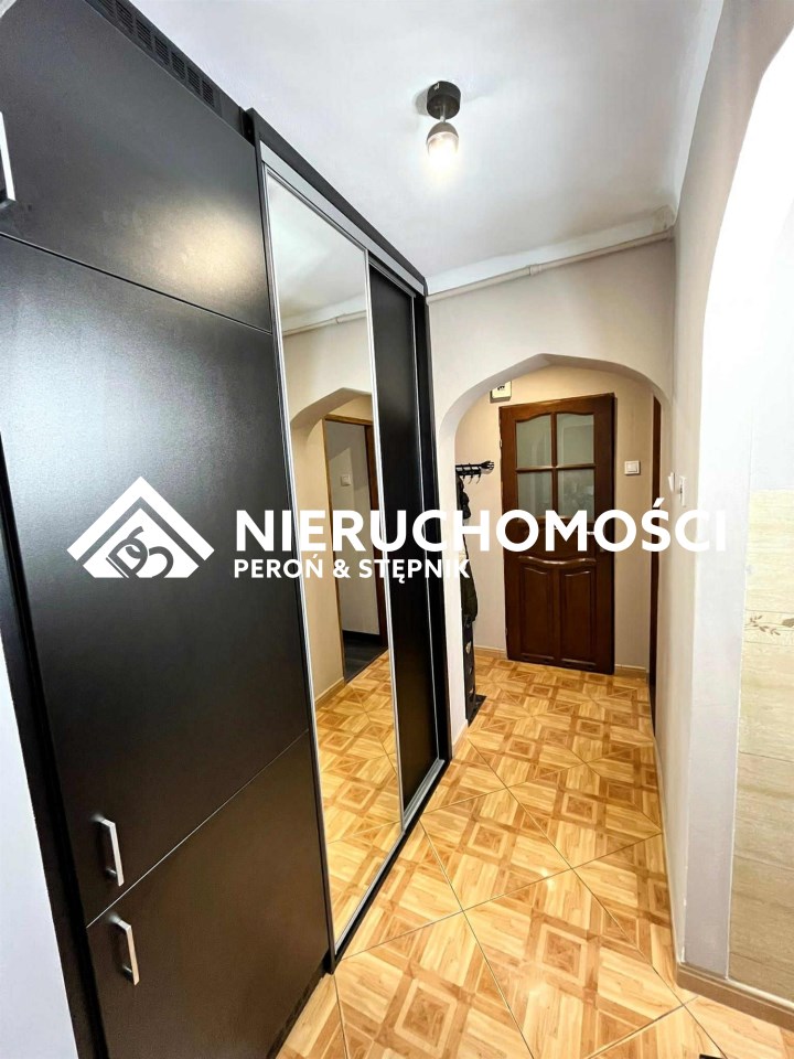 Wchodząc do mieszkania mamy przedpokój z zabudowaną szafą, jest to centralne pomieszczenie, z którego mamy wejście do każdego pomieszczenia, łazienka z WC, na wyposażeniu mamy wannę oraz piec gazowy JUNKERS zakupiony w 2020r, później wejście do pokoju, w którym znajduje się pojemna szafa i rozkładana kanapa, dalej idąc przedpokojem wchodzimy do w pełni zabudowanej i wyposażonej kuchni. Kolejne pomieszczenie to salon z balkonem, z którego widzimy m.in pod koronami drzew bardzo duży parking, na którym zawsze znajdziemy miejsce. Dodamy tylko że widok z 8 piętra jest bardzo przyjemny!